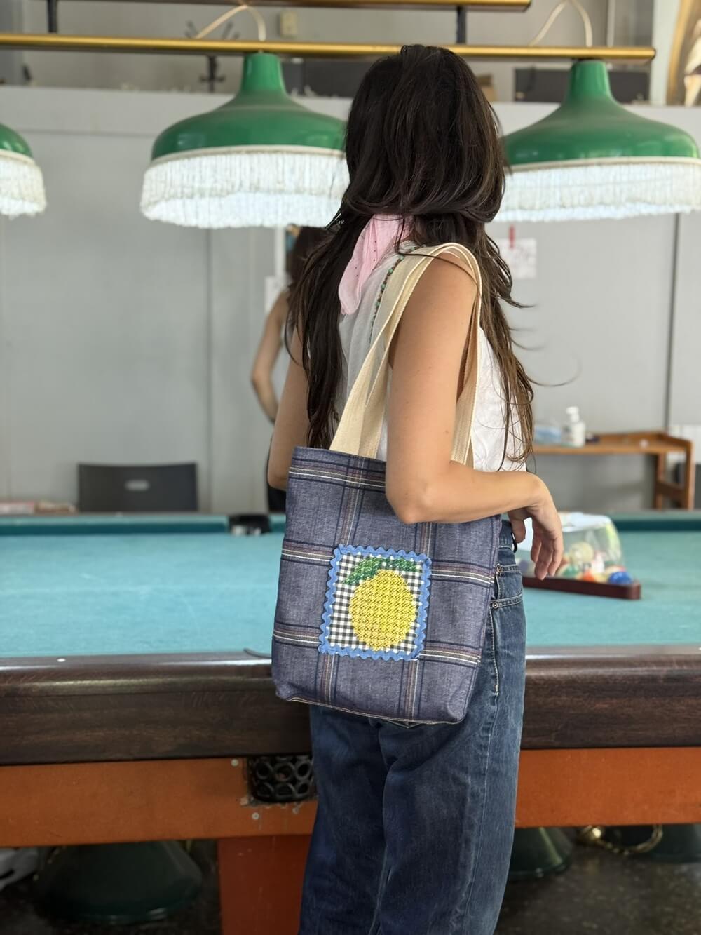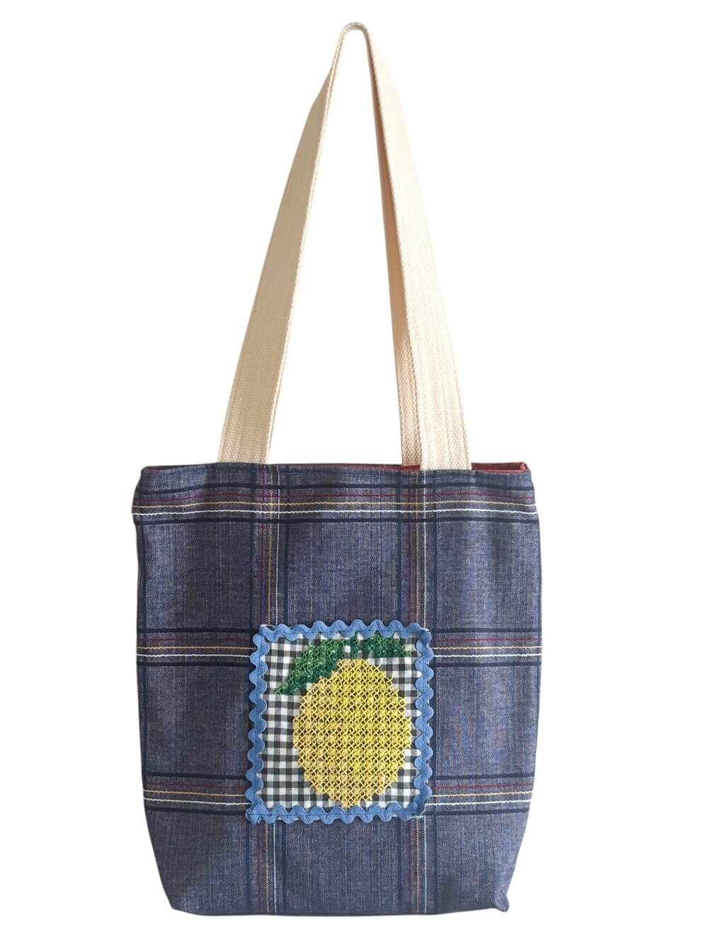 Χειροποίητη τσάντα με κεντημένο σχέδιο λεμόνι.